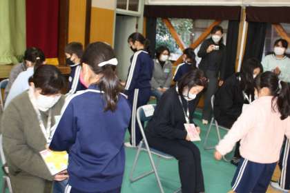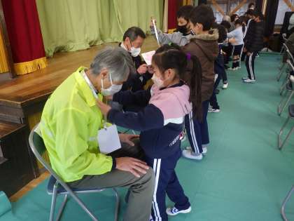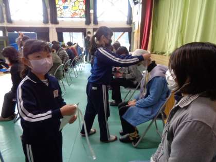 次に、低学年か作ったメダルを一人一人に送りました。かわいい絵やメッセージを頑張って書きました。これは、A班か企画し、低学年に依頼したものです。