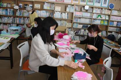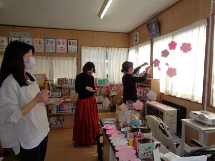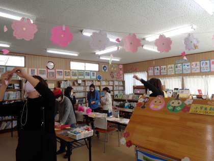 感謝会が終わると、早速、図書館ボランティアの方が卒業、春に向けて図書館を飾り付けてくださいました。明るくなった図書館、6年生も気持ちよく旅立ちの日が迎えられそうです。