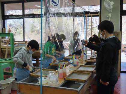 和紙づくりの過程を一つ一つ教えていただき、世界に一つだけの和紙ができました。