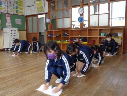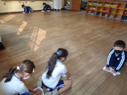 高学年がお手本を見せ、低学年が後ろをついていきます。