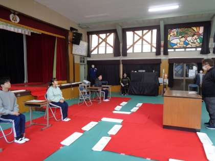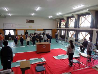 卒業式 予行練習 公開日 2023/03/16 更新日 2023/03/16 学校行事 3月15日(水)、卒業式の予行練習を行いました。引き締まった雰囲気の中、入場してくる6年生。来賓の祝辞の代わりに、過年度に担任した先生がお祝いの言葉を述べました。 本当に卒業が近いと実感します。 6年