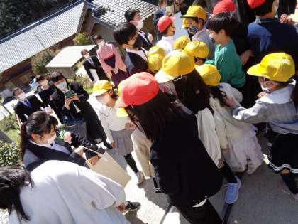 門出送りは、小さい子たちや懐かしい子たちも来てくれて、にぎやかな門出送りになりました。名残惜しそうに、タッチをする子どもたち。