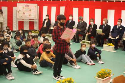 今日は、41名全員が出席し、みんなで新入生の入学と2から6年生の進級のお祝いをしました。
