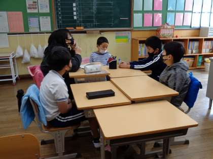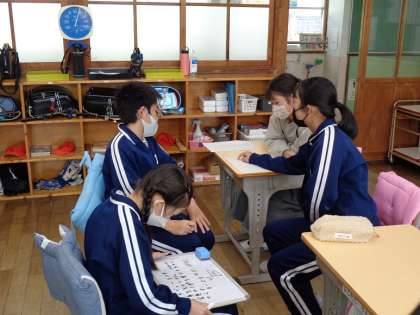 5・6年生が合同で、来月の「ひよこ集会」と「正三ウォーク」の企画を練っていました。