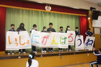 1年生の入学をお祝いする「ひよこ集会」を行いました。
