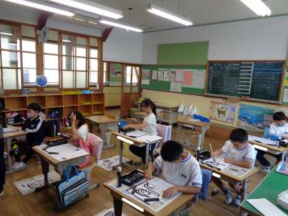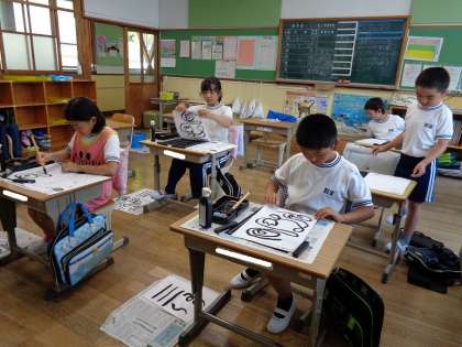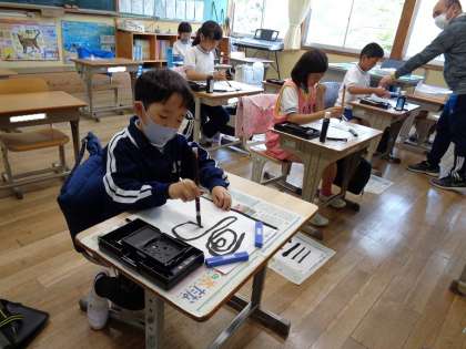 習字道具や筆の扱いに慣れるために、線を書く練習に取り組みました。