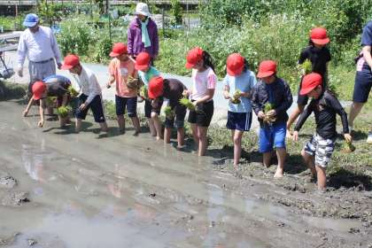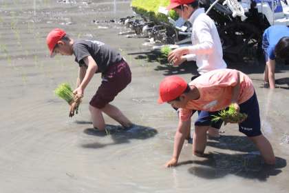 3・4年生 田植え 公開日 2023/05/11 更新日 2023/05/11 学校の特色ある活動 田んぼの先生に教えてもらいながら田植えをしました。 先日、代掻きがわりのどろんこ遊びをした田んぼに、10センチくらいに育った苗を丁寧に植え付けました。 田んぼの先生に田植え機にも乗せてもらい、機械植えも体験しました。 インタビューもし、生産者の思いについても学ぶこともできました。 田植えが終わった田んぼでは、植え付けられた苗が気持ちよさそうに揺れていました。