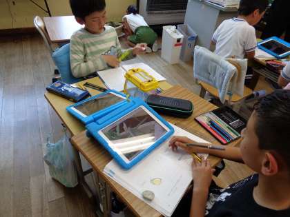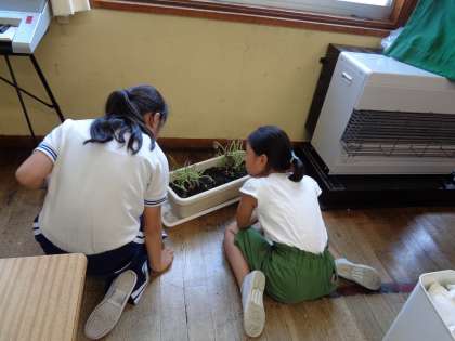 3年生の教室では、モンシロチョウが次々に羽化しています。