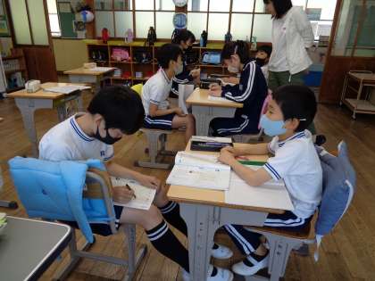 5年生 国語 公開日 2023/05/24 更新日 2023/05/24 各学年から インタビューの仕方について学習していました。 教科書のインタビューの文例を読んで、よいところを見つけ、ペアで伝え合っていました。 最初に聞きたいことを簡潔に伝えた方がいい。 相手の返答を聞いて、さらに聞きたいことを付け加えるといい。 意図を明確にして相手にインタビューすることで、知りたい情報を得ることができることに気づいたようです。 これからの生活で、生かしていけるとよいです。