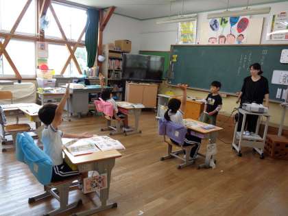 教科書の挿し絵や文章から、テーマに合わせた話し合いをしていました。