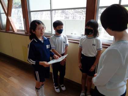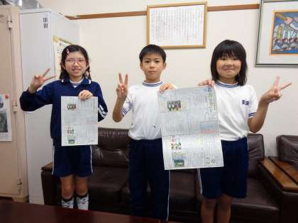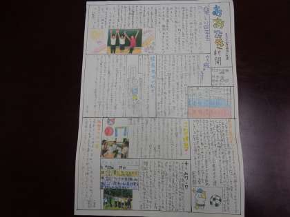 4年生 国語 公開日 2023/05/30 更新日 2023/05/30 各学年から 「みんなで新聞を作ろう」の単元で取り組んだ新聞をもって、他学年の教室や校長室、職員室を訪問しました。 新聞の名前は「あおたき新聞」 4年生の級訓にちなんだ名前です。 紙面は見出しごとに読みやすくまとめられ、他学年へのアンケートやインタビューなども掲載されており、充実していました。 4年生記者たちのアイデア満載の「あおたき新聞」です。