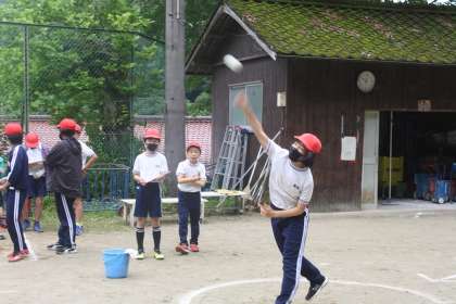 昨日からの雨も朝方にやんだので、全校で体力テストに取り組みました。