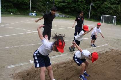 運動場では、ソフトボール投げと立ち幅跳び。