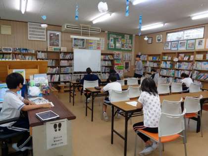 わくわくタイムの時間をつかって、ライブラリー委員会が来週から始まる読書祭りの準備をしていました。