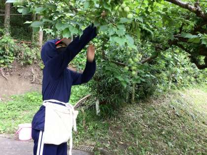 地域の方のご厚意で、梅の実の収穫をさせてもらいました。