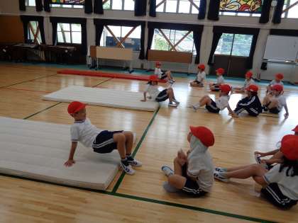 念入りに準備運動をしたあとは、いよいよマットを使った運動です。
