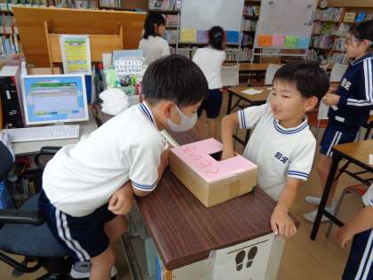 図書館でくじびきをして、クイズに答え、正解だったらスタンプがもらえます。