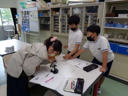 今日は、昨日生まれた赤ちゃんと、卵の様子を顕微鏡で観察していました。