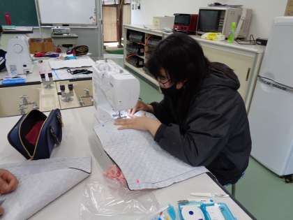 5年生で習ったことを思い出しながら、上手に縫っていました。