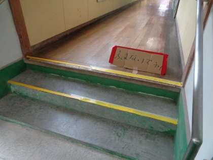 特に、1階の職員室前廊下は突き当りが階段になっていて、滑って階段を踏み外しそうになることがありました。