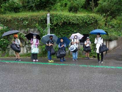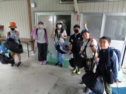 あいにくの雨模様ですが、5年生6人は元気いっぱいに学校を出発しました。