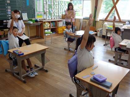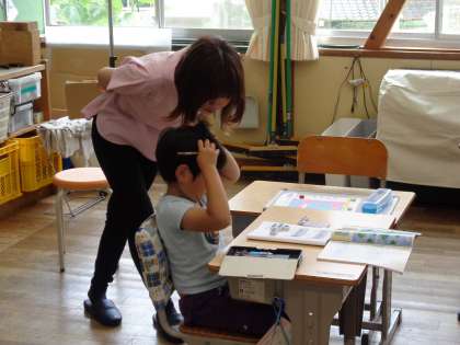 3月まで園児だった子どもたちですが、りっぱな1年生になったところを見ていただきました。