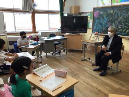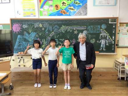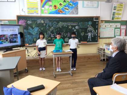 4年生 総合的な学習の時間 公開日 2023/07/04 更新日 2023/07/04 各学年から 4月から、米づくりについて追究活動に取り組んでいます。 今日は田んぼの先生に来校いただき、これまでの活動を振り返ったり、活動の中から出てきた新しい疑問に答えてもらったりしました。 おかげさまで、稲も順調に育っています。 この後も、田んぼの先生のお力をお借りしながら、追究活動を進めていきます。 田んぼの先生、これからもよろしくお願いします。