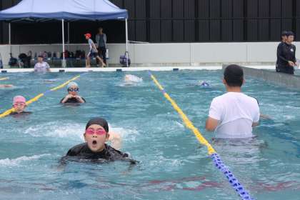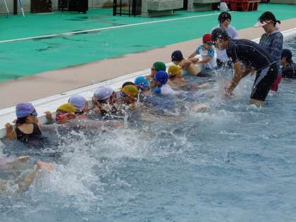 陽射しはなかったのですが、水温は高く、プールに入っている子どもたちは楽しそうでした。