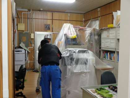集会室、理科・家庭科室と工事が進み、今日は、職員室と校長室の工事です。
