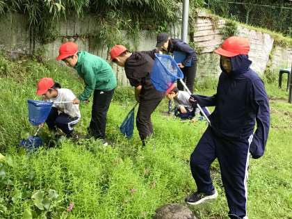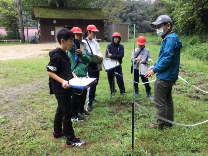 湿地の先生に来ていただき、校内の自然観察に取り組みました。