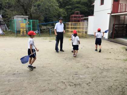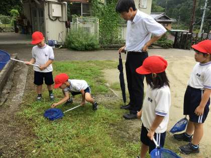 勇んで虫取りに出かけたものの、ちょっぴり怖かった1年生でした。