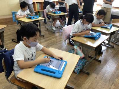 タブレットを活用して、自分の考えをまとめたり、具体物の操作活動をしたりしていました。