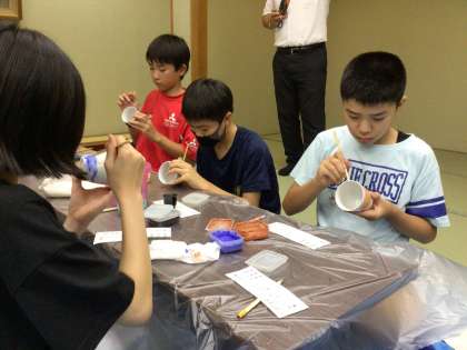 清水焼の絵付けをしました。