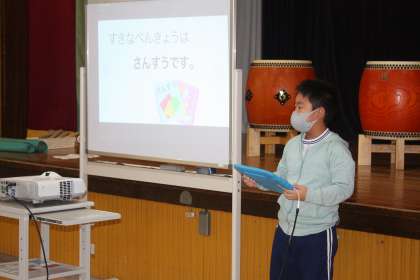 3年生のスピーチをお手本に、11月には2年生が全校スピーチに挑戦します。