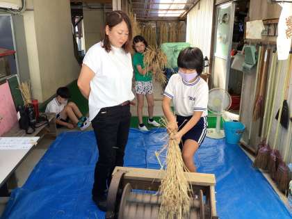 4年生&7・8組 脱穀