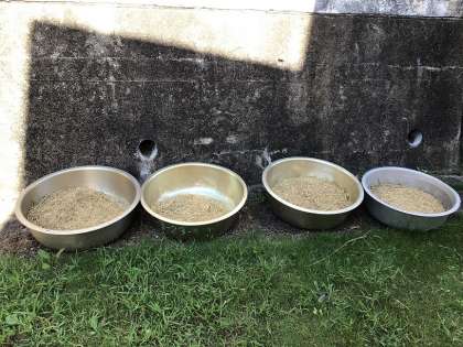 稲穂から落とした籾は、たらい4杯(満杯ではありませんが・・)になりました。