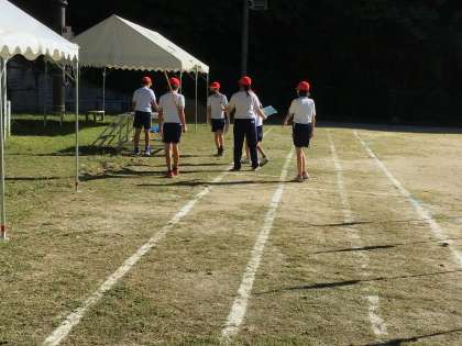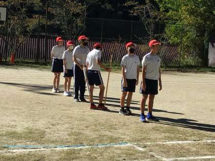 集合時刻よりも前に運動場に行くと、6年生が既に準備を始めていました。