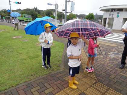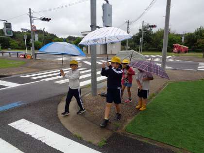 道路を渡る時は、左右の確認をしっかりすることや、傘をさしている時は、傘を高く持ち上げて左右の確認をすることを教わりました。
