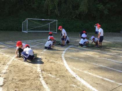 運動会の練習を全て終え、5時間目は全校で運動会の準備をしました。
