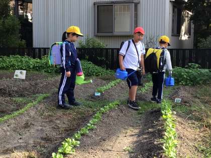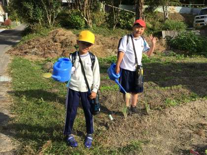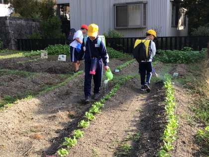 朝の学級園 公開日 2023/10/20 更新日 2023/10/20 特色ある学校づくり推進事業 冬野菜の栽培活動に取り組んでいます。 今日は、1年生と5年生が水やりに来ていました。 夏野菜を美味しくいただくことができたので、冬野菜も上手に育てて味わうことができるといいと思います。 特色ある学校づくり