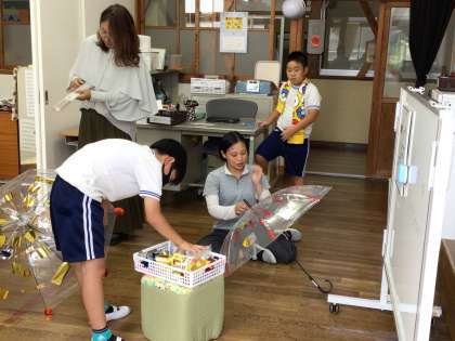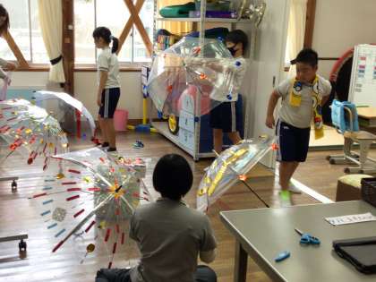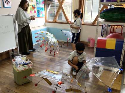 ビニール傘を飾りつけていました。