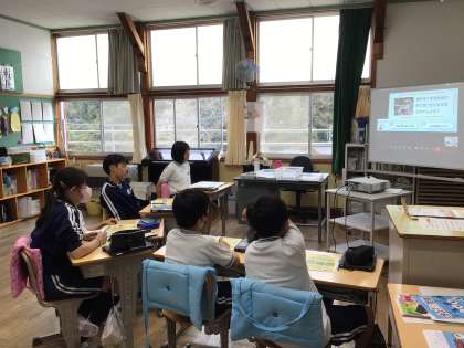 トヨタ自動車の工場とオンラインでつなぎ、自動車の製造の行程やよりよい自動車をつくるための工夫について学習しました。