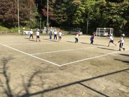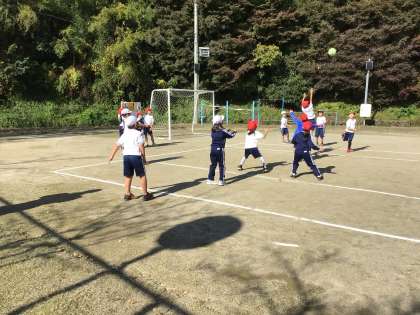 楽しみながら、ボールを投げる運動に取り組んでいました。