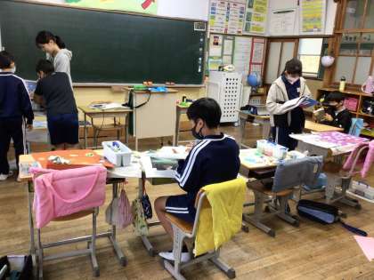 読書感想画に取り組んでいました。