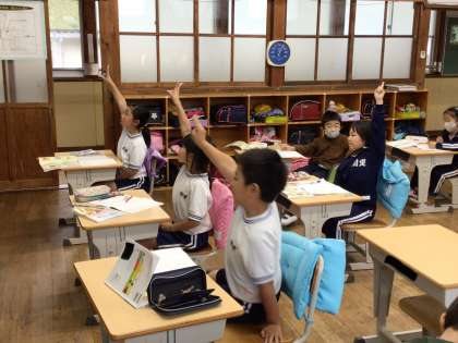 友達の意見に付け足しをしたり、前に出て説明したり、みんなで学び合う2年生です。