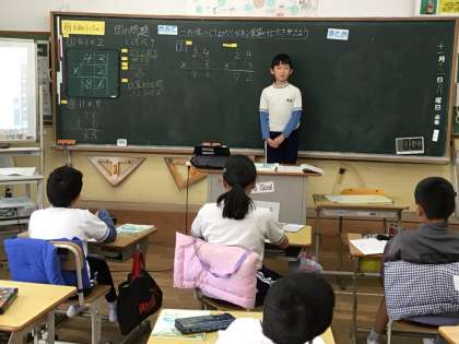 互いの考えを交流させながら、どのように計算すると正確に解けるのか話し合っていました。