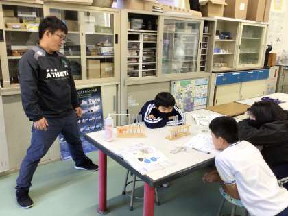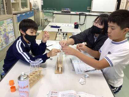 その後、塩酸に鉄釘やアルミ箔を入れて、溶ける様子を観察していました。