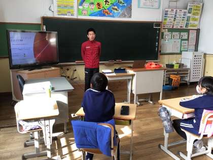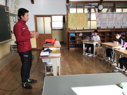 授業の前半は、教室で石田選手の生い立ちやどのように自分の障がいに向き合ってきたのか、今後の目標などを話していただきました。
