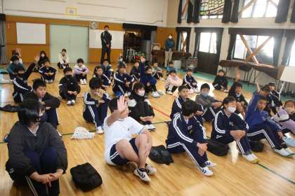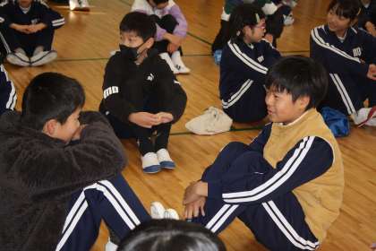 けさの全校集会では、人権について、みんなで話し合いました。