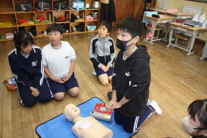 AEDは、代表児童が操作しました。